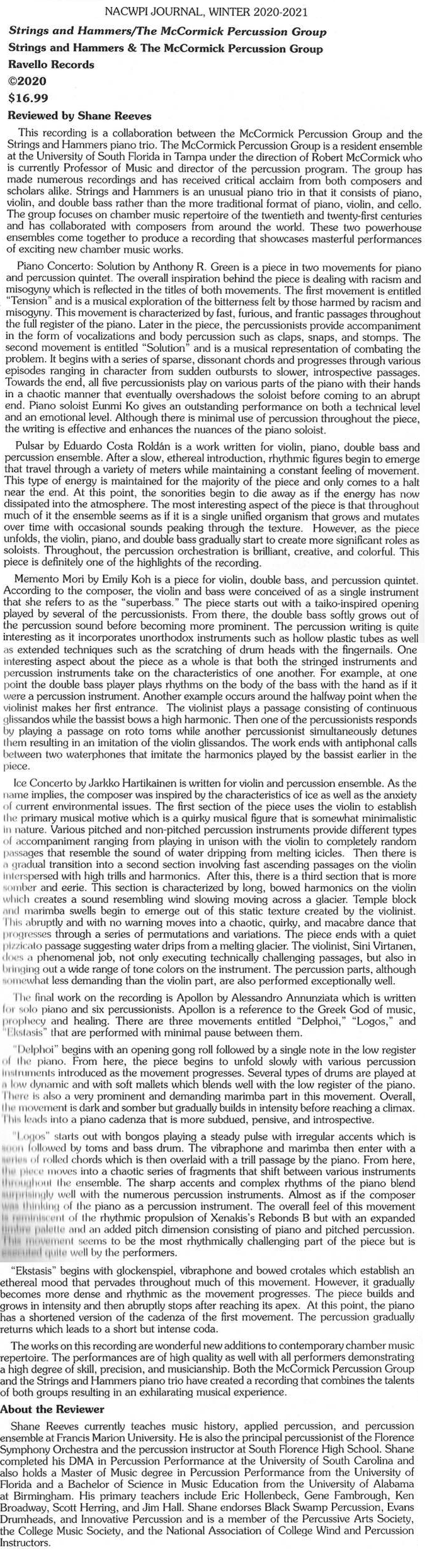 NACWPI JOURNAL, WINTER 2020-2021